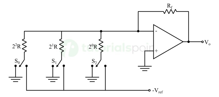 二進位制加權數模轉換器的構造如下所示。