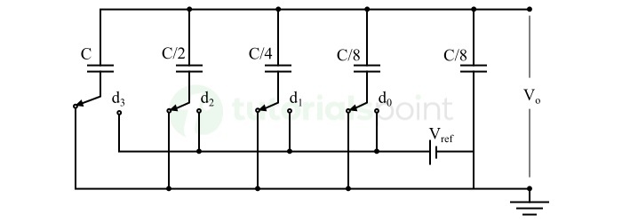 在這種型別的雙極性輸出數模轉換器中,電容和開關的組合用於將數字訊號輸入轉換為模擬訊號輸出。