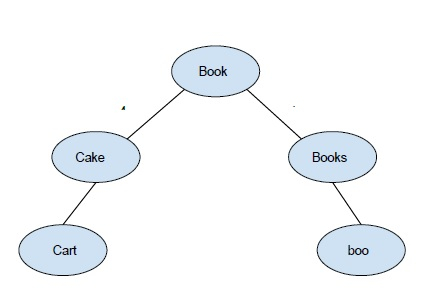 考慮一個包含單詞 {book, books, boo, cake, cape} 的字典 -