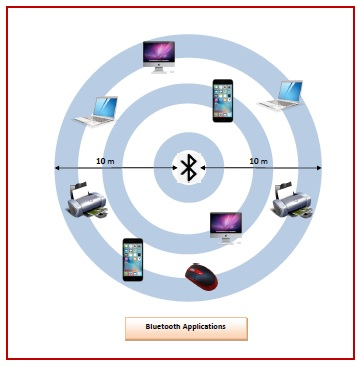 電纜替代 − 藍牙取代了有線網路中大量線纜的需求。連線可以即時建立,即使裝置超出範圍也能保持連線。裝置的範圍通常為 10 米。但是,可以使用放大器擴充套件範圍。