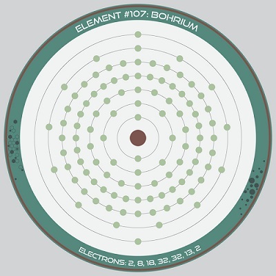 Bh原子含有107個電子,電子層結構為2.8.18.32.32.13。