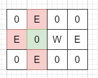 {{'0','E','0','0'},{'E','0','W','E'},{'0','E','0','0'}}輸出