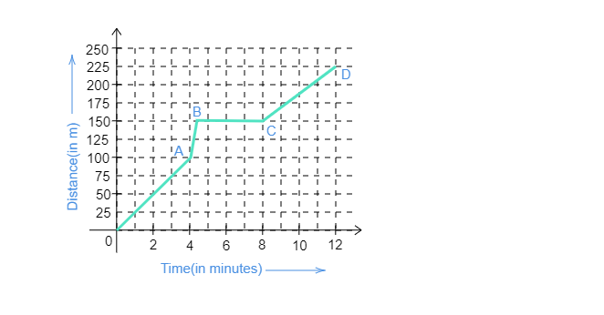(b). 在0到4分鐘之間,圖不是一條直線。所以,這不是勻速運動。