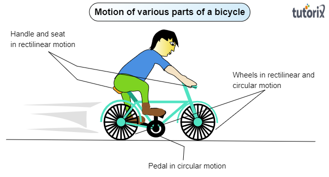$(iii)$. 直線運動和圓周運動:腳踏車的車輪既有圓周運動也有直線運動。車輪在其軸上旋轉做圓周運動,同時也向前移動做直線運動。