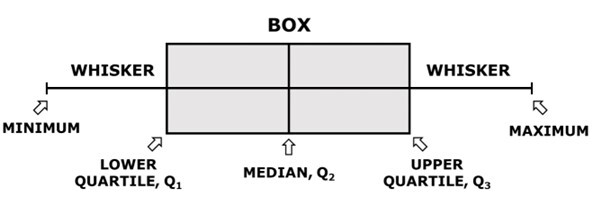 須線用於表示上四分位數和下四分位數之外的變化。箱線圖的一個特點是它是非引數的。而箱線圖的這一特性實際上有助於在樣本中顯示統計總體變化,在這些樣本中沒有對潛在的統計分佈做出任何假設。
