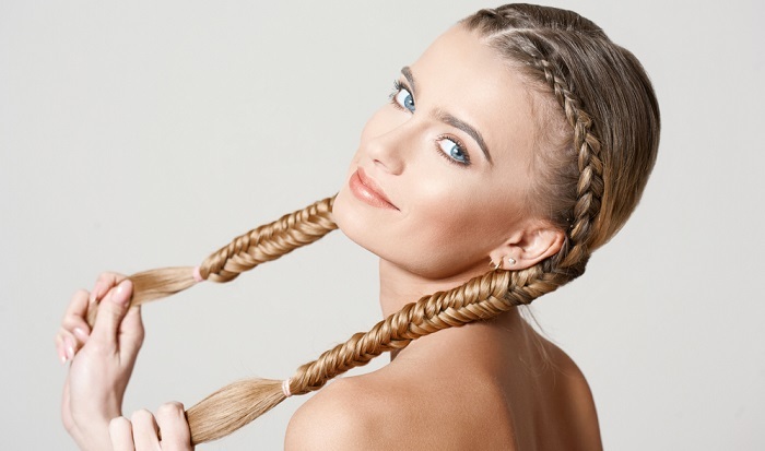 繼續以這種方式新增頭髮和編織,在編織時將外部部分帶到中間。