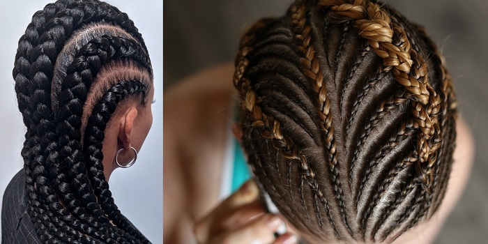 玉米辮 − 玉米辮是緊密的、編織的髮型,透過將頭髮緊貼頭皮以直線編織而成。