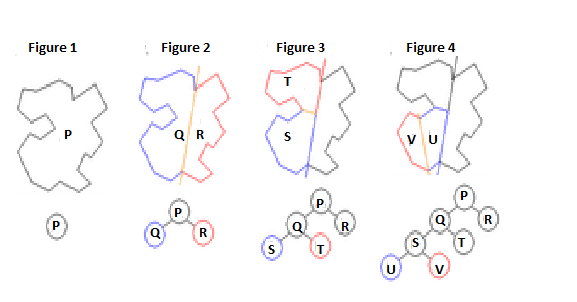 - 如果該多邊形與包含A的平面相交,則將其分成兩個多邊形,並將它們移動到分別位於P後面和前面的多邊形列表中。