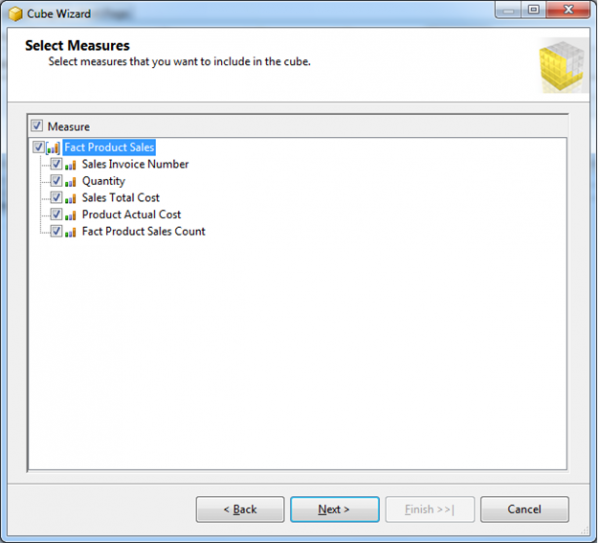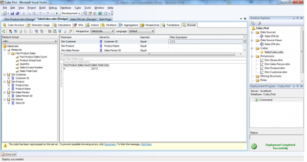 12. 新增維度和事實欄位,如上圖所示。多維資料集已準備好獲得如下所示的快速結果: