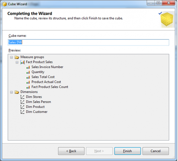 輸入多維資料集名稱並單擊完成按鈕。多維資料集將像這樣建立:
