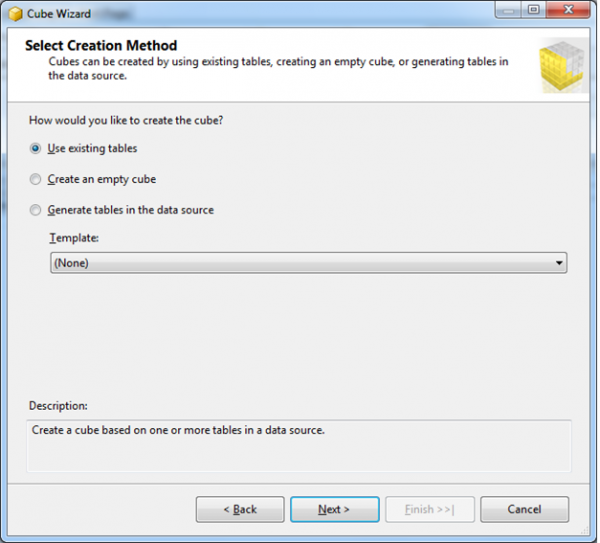 5. 透過在解決方案資源管理器中右鍵單擊多維資料集來建立新的多維資料集: