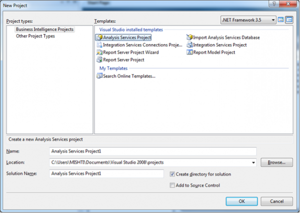2. 在Microsoft Business Intelligence Development Studio中建立一個**新的分析服務專案**:
