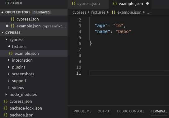 cypress.json - 要更改預設的 Cypress 配置,將使用此資料夾。我們需要在此處設定新的配置,這將覆蓋預設配置。