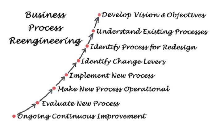 它強調使用系統方法和問題解決技術來連線人員、流程和技術。更改這種導致預期業務成果的邏輯行動流程,以更高的效率和質量以及更低的成本,稱為業務流程重組。它基本上是對業務流程的重新思考和重新設計,以大幅提高質量、服務和速度,同時降低成本。