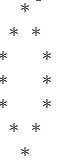 End declare and set int res = n - 1 Loop For int h = res and h >= 0 and h-- declare and set int temp2 = h + n Loop For int k = 0 and k < temp2 and k++ if ((k == n + h - 1) || (k == n - h - 1)) print * End Else print space End End Print