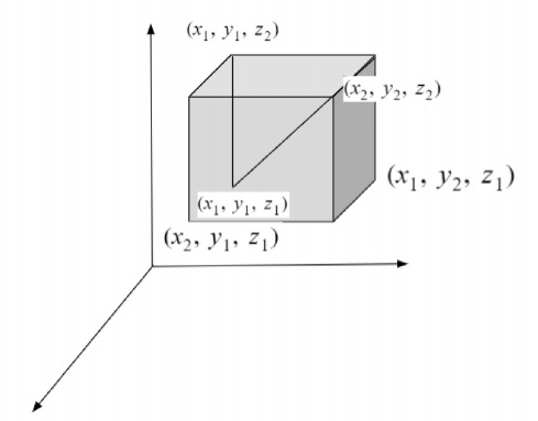 $$\sqrt{\lgroup x2-x1\rgroup^{2}+\lgroup y2-y1\rgroup^{2}+\lgroup z2-z1\rgroup^{2}}$$