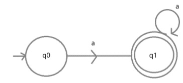 我們取一個大小為 N 的字串 S, 我們需要設計一個確定有限自動機 (DFA) 來接受語言 L = {aN | N ≥ 1}。