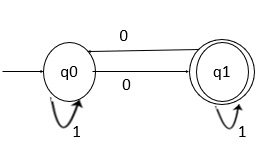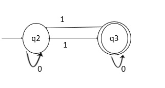 現在,當我們再次輸入1時,它將進入狀態q2。最後,在狀態q2上獲得輸入1後,它將到達狀態q3,這是最終狀態。