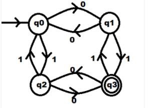 現在輸入0,它將進入狀態q2,然後再次輸入0,它將進入狀態q3。
