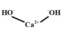 氫氧化鈣用化學式Ca(OH)_2表示。其中,鈣離子Ca^(2+)和兩個氫氧根離子OH^-透過離子鍵結合在一起。它也可以透過氯化鈣水溶液與氫氧化鈉反應制備。