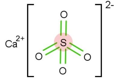 CaSO4由1個Ca原子、1個S原子和4個O原子組成。它是一種離子分子,由1個鈣陽離子和1個硫酸根陰離子組成。Ca離子化合價為+2,而硫酸根多原子離子化合價為-2。因此,當它們相互作用時,會形成中性化合物CaSO4。