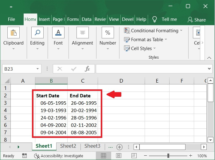 首先,您必須建立一個示例資料,如下面的螢幕截圖所示。