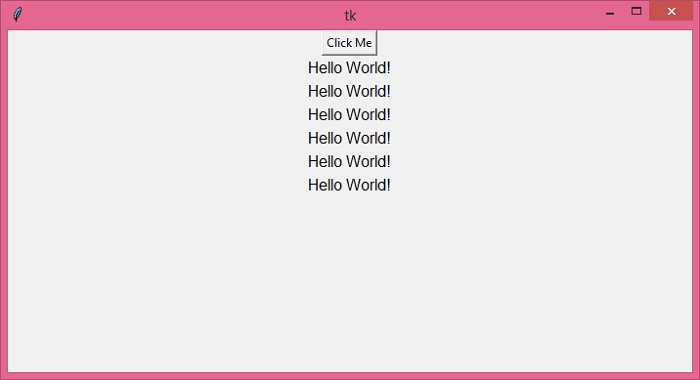 執行以上程式碼將顯示一個包含按鈕的視窗。點選按鈕將在主視窗中顯示包含文字的 Label 部件。