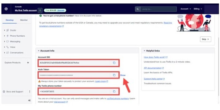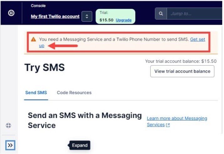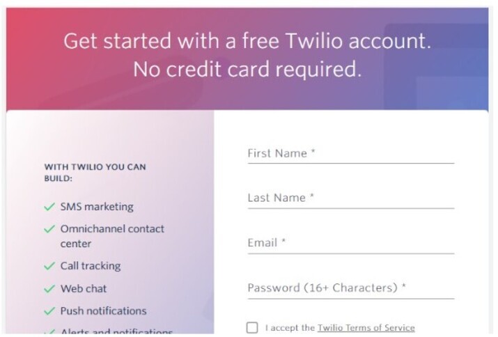 下一步是設定Twilio賬戶。Twilio是一個雲通訊平臺,提供用於訊息、語音和影片的API。您可以在Twilio網站上註冊免費賬戶。