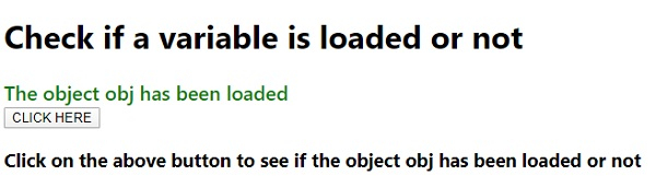 以下是驗證 JavaScript 變數是否已載入的程式碼 −