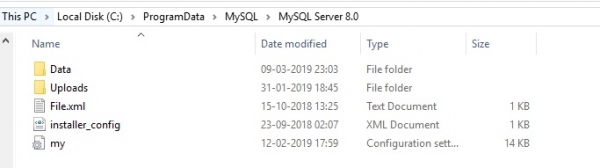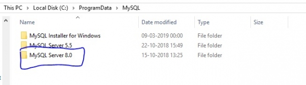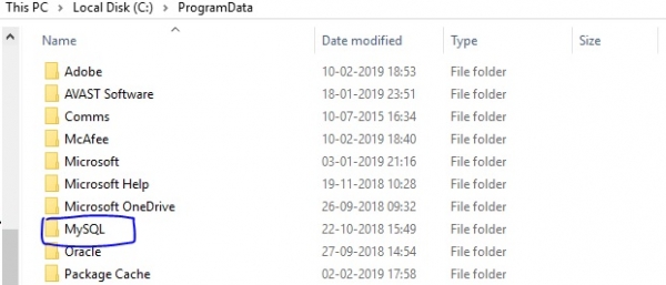 現在進入**Program Data**目錄下的 MySQL。快照如下所示 −