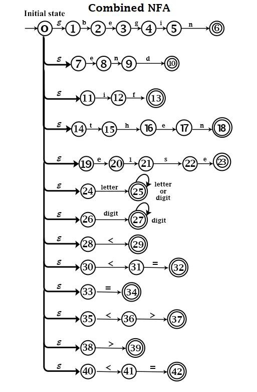 - 各種模式的組合 NFA 將是