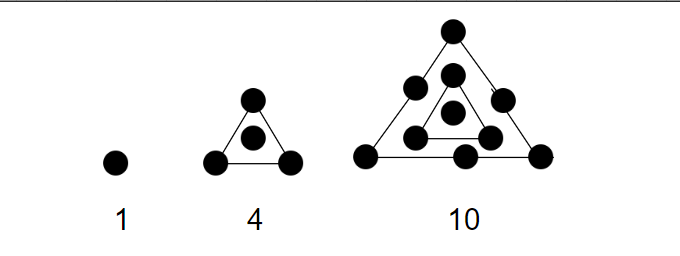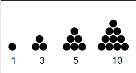 三角形排列的物體或點可以用來表示一種稱為三角數的特定圖形數。第 n 個三角數是前 n 個自然數的和。