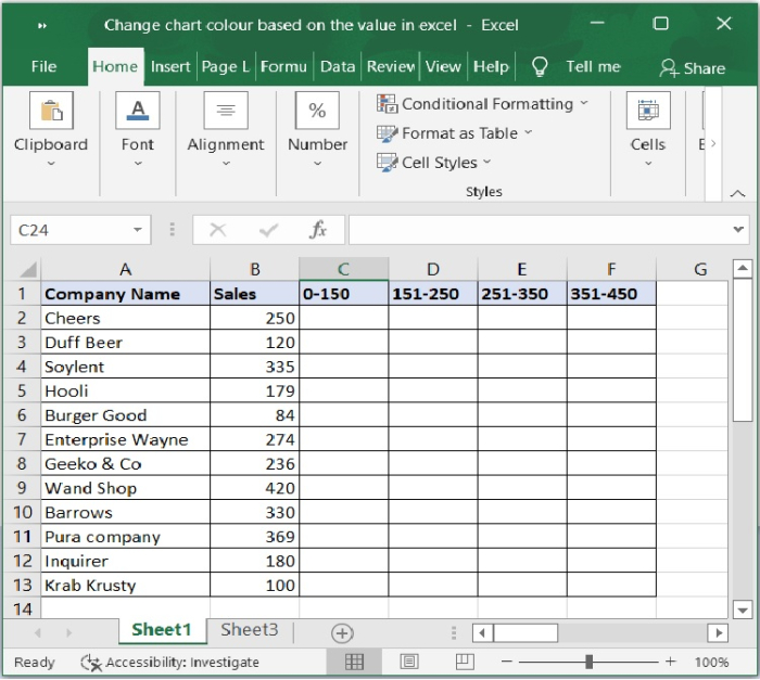 在本教程中,我們演示瞭如何根據值範圍更改顏色。Excel 具有定義我們自己值的靈活性,我們可以使用值範圍進行格式化。