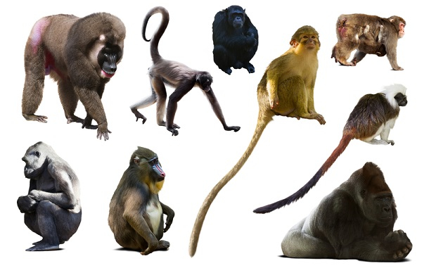 其中 90% 以上是猴子,其餘 10% 是猿和人類。