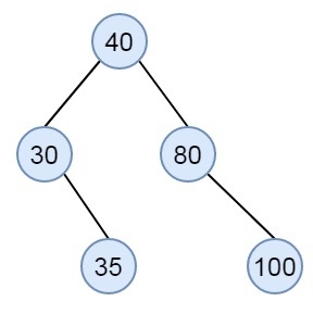 假設陣列中有一組元素,我們要檢查這些元素是否能表示二叉搜尋樹的前序遍歷。假設一個序列類似於 {40,30,35,80,100},那麼該樹將類似於 −