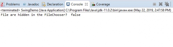 JFileChooser file = new JFileChooser(); file.setMultiSelectionEnabled(false); file.setFileSelectionMode(JFileChooser.FILES_AND_DIRECTORIES); file.setFileHidingEnabled(false); boolean res = file.isFileHidingEnabled();