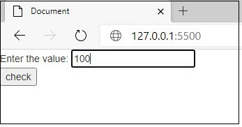 要檢查輸入值是數字還是字母,可以使用 JavaScript 中的 isNaN() 函式。如果值為 NaN(非數字),則該函式返回 true。以下是程式碼:-