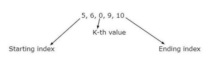給定的整數陣列為5,6,0,9,10,長度為 4,起始索引為2,用作陣列的長度。