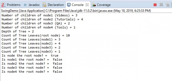 System.out.println("Count of Tree Leaves(node2) = " +node2.getLeafCount());