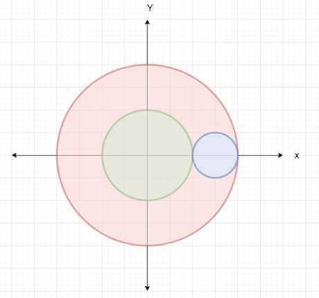 因此,如果輸入類似於r1 = 4 r2 = 2 coord = (3, 0) r = 1,則輸出為True。