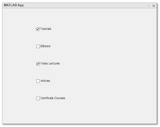 透過這種方式,我們可以在 MATLAB 應用程式中建立複選框。
