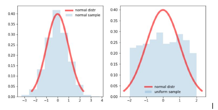 在上圖中,我們可以看到左圖比右圖更接近鐘形正態曲線。因此,我們可以推斷左圖是正態分佈。