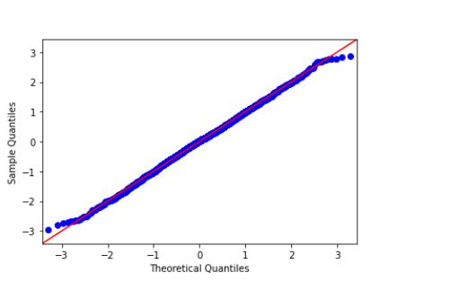 import statsmodels.api as sapi from scipy.stats import norm as nm import matplotlib.pyplot as plt data = nm.rvs(size=2000) sapi.qqplot(data, line='45') plt.show()