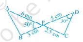 兩條線段\( \mathrm{AC} \)和\( \mathrm{BD} \)相交於點\( \mathrm{P} \),使得\( \mathrm{PA}=6 \mathrm{~cm}, \mathrm{~PB}=3 \mathrm{~cm}, \mathrm{PC}=2.5 \mathrm{~cm}, \mathrm{PD}=5 \mathrm{~cm}, \angle \mathrm{APB}=50^{\circ} \)和\( \angle \mathrm{CDP}=30^{\circ} \)。