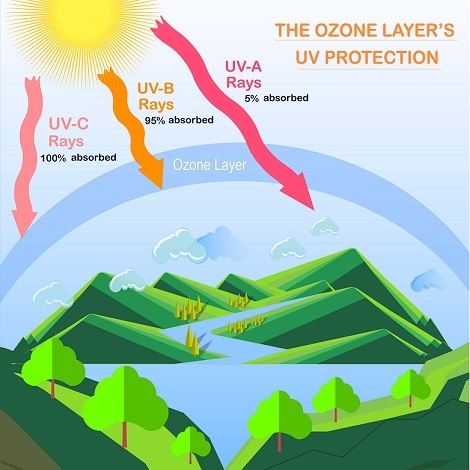 臭氧還在保護地球表面免受有害紫外線輻射方面發揮著至關重要的作用。臭氧層位於地球的平流層,充當屏障,吸收大部分太陽的有害紫外線輻射。