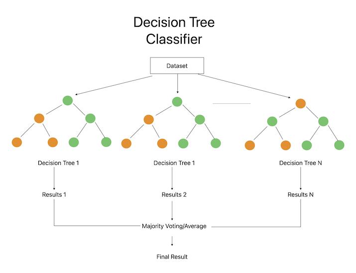 眾所周知的分類方法隨機森林結合了許多決策樹。該方法透過使用輸入特徵和訓練資料的隨機子集來構建大量決策樹。然後,使用所有樹的預測的總和來建立最終預測。
