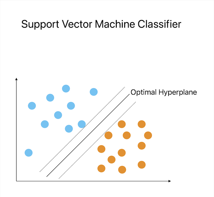 一種流行的分類技術,支援向量機 (SVM) 找到最佳化類別之間距離的超平面來對資料進行分類。在二元分類任務中,超平面表示將兩個類別分開的決策邊界。該方法透過將輸入資料投影到高維空間來工作,在該空間中,線性分類器可以找到超平面。