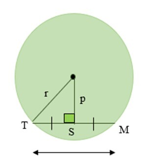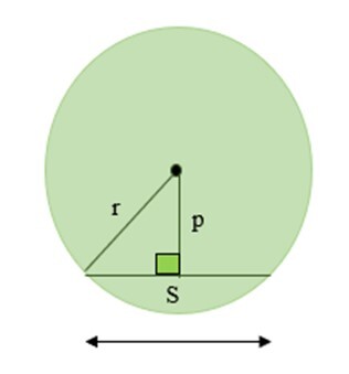 $$\mathrm{S\:=\:2\sqrt{(r^{2}\:-\:p^{2})}}$$