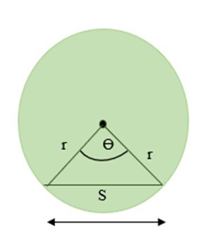 讓我們考慮一個半徑為r、弦長為S的圓。弦在圓心處成θ角。
