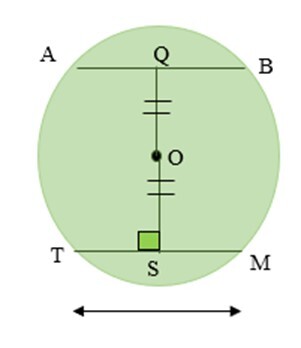 定理 2 − 如果從圓心到各自弦的垂線長度相等,則兩條弦相等。在給定圖中,TM = AB。